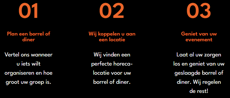 Wij vinden een perfecte horeca-locatie voor uw borrel of diner.